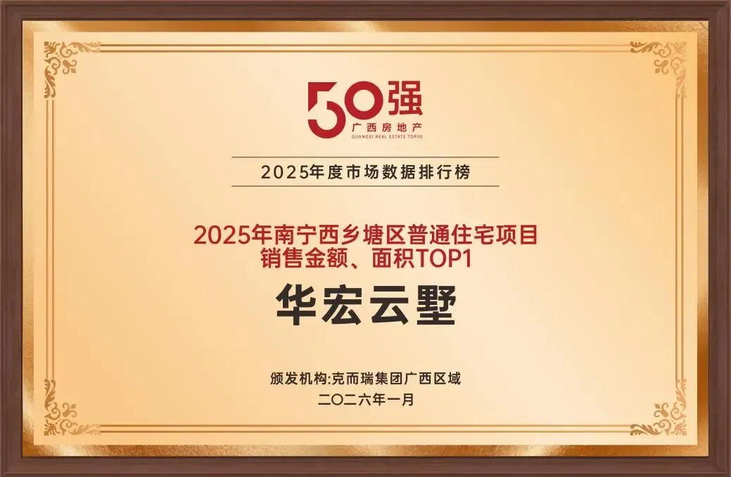 榜单评选覆盖广西14个地级市及50余个县域/县级市,超300个优秀企业与项目参评。广西华宏地产凭借稳健的经营策略和扎实的产品力脱颖而出,揽获多项重磅荣誉,旗下标杆作品华宏云墅同步斩获销售佳绩,实力印证品牌硬实力。