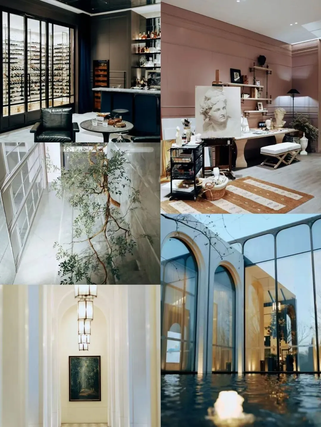 首层宴客厅以尺度彰显气度,餐厅、岛台、茶桌与超大厨房形成流畅的宴客动线,全景落地窗打破室内外界限,将院落风光化作宴会背景。360°采光天井更是神来之笔,沉浸式的光影,将时光幻化为点缀生活的鎏金叙事。在这里,家族晚宴、艺术沙龙、私酌独处都有恰如其分的舞台。