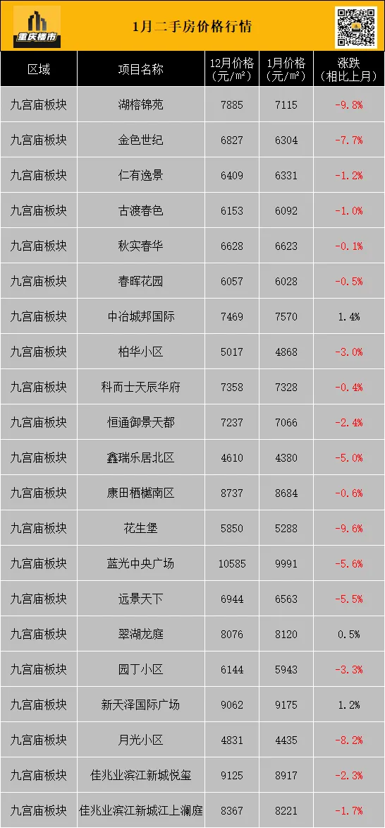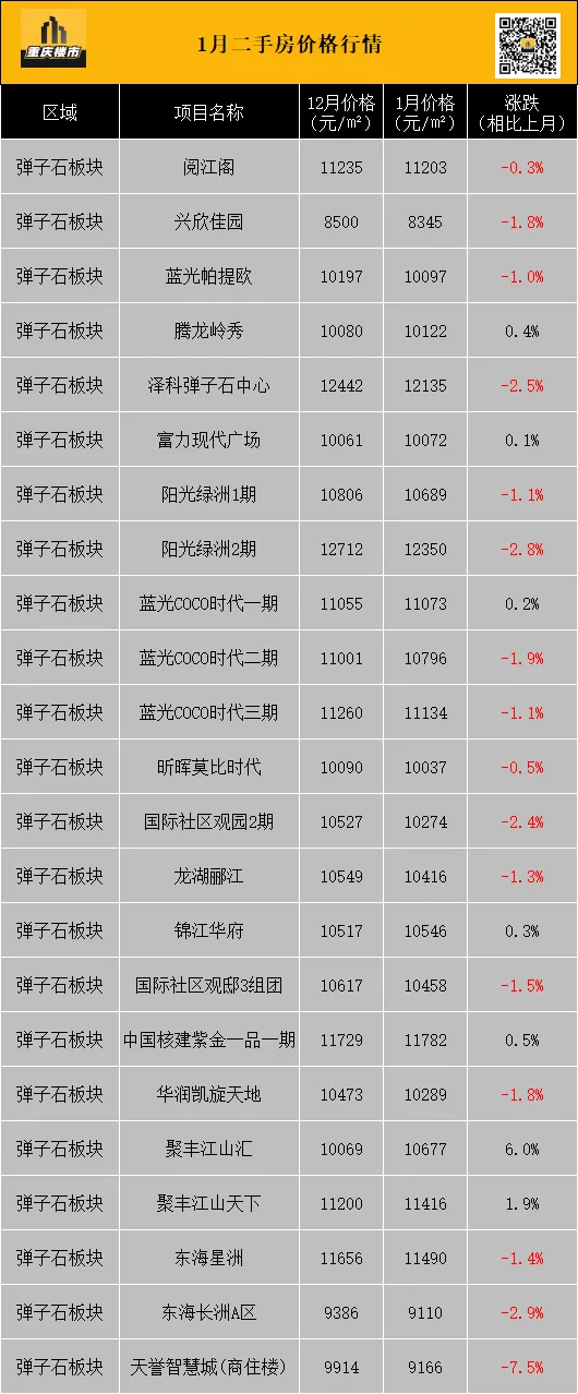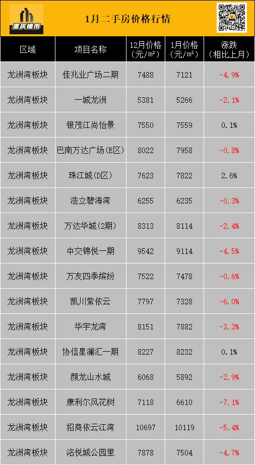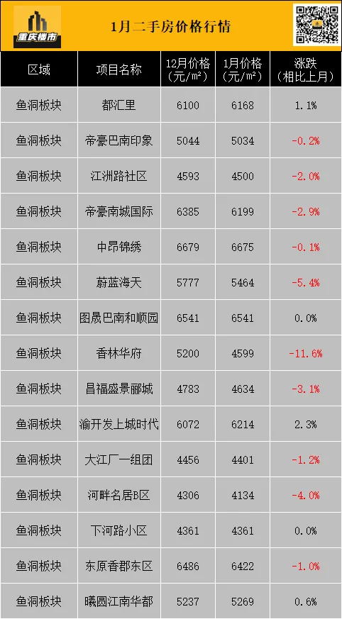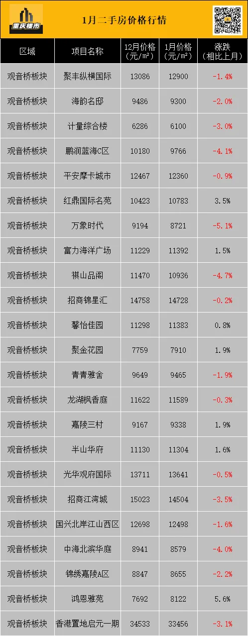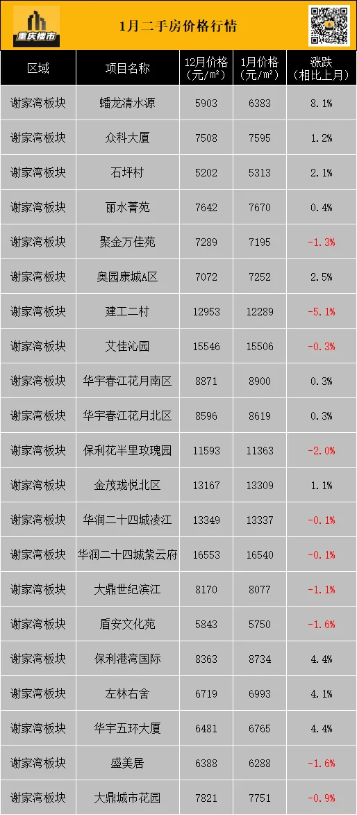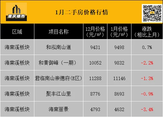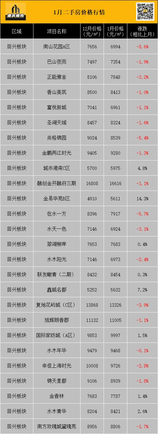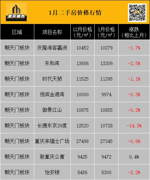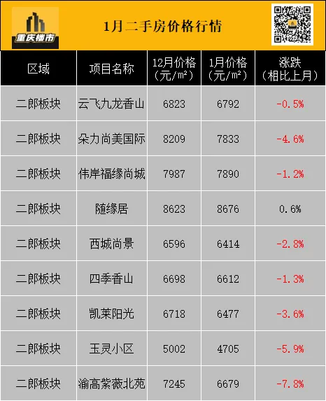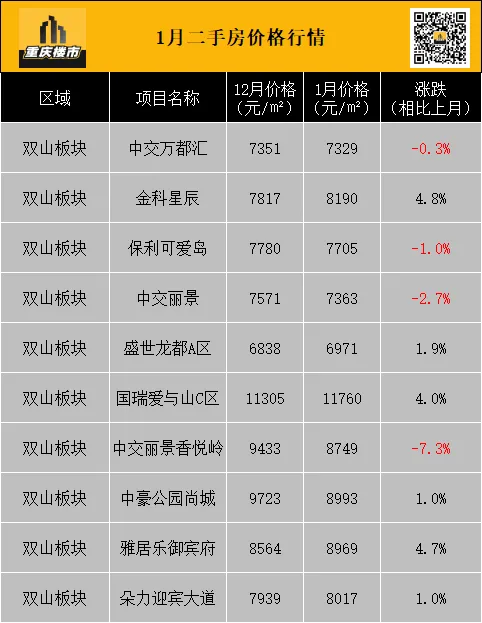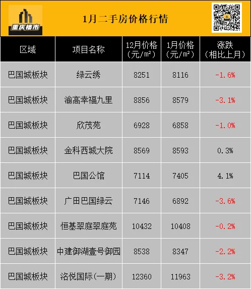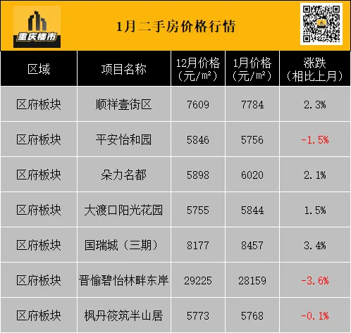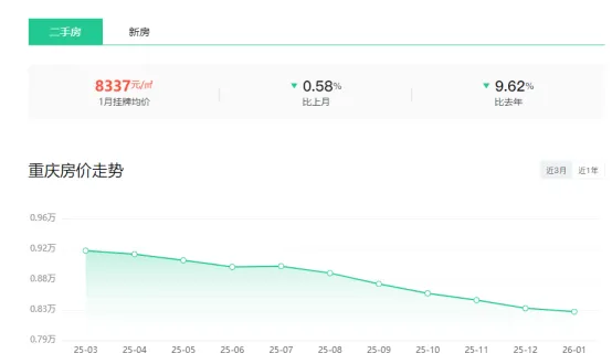 1月,重庆二手房挂牌均价8337元/㎡(挂牌数据来源:重庆安居客)。