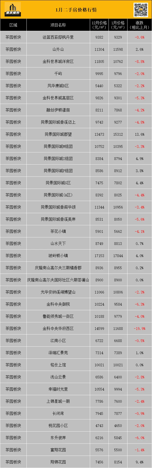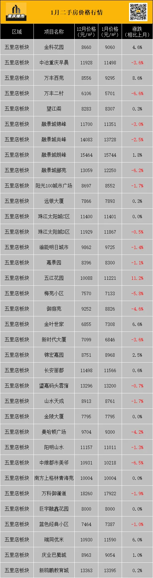 (以上数据来源:克而瑞重庆)