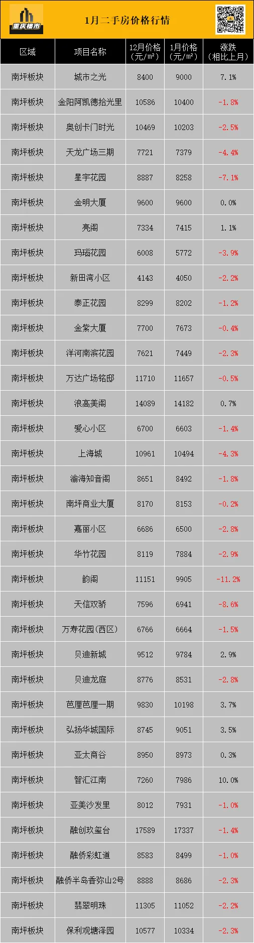 那么,进入2026年,主城各个板块的二手房挂牌价究竟表现如何?哪些在默默发力,哪些还在调整?接下来,就和小陈一起看看。