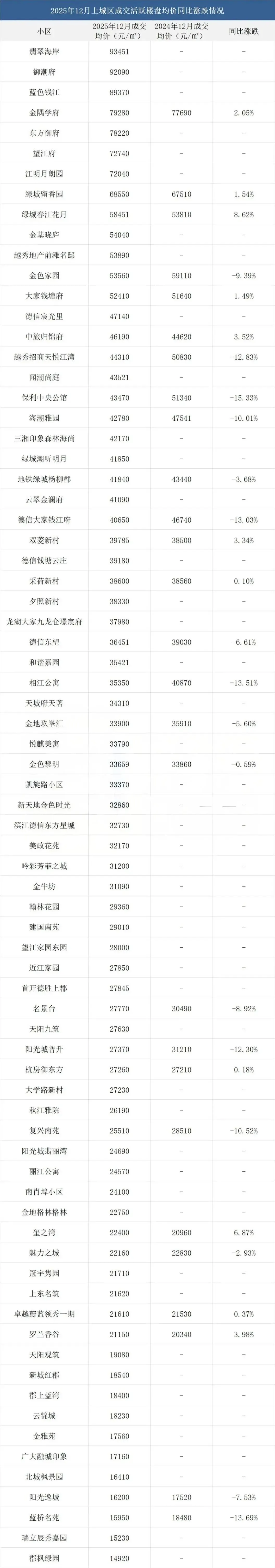 但价格整体在回调,2025 年 12 月住宅成交均价 25161 元/㎡,比 2024 年同期跌了 12.2%;