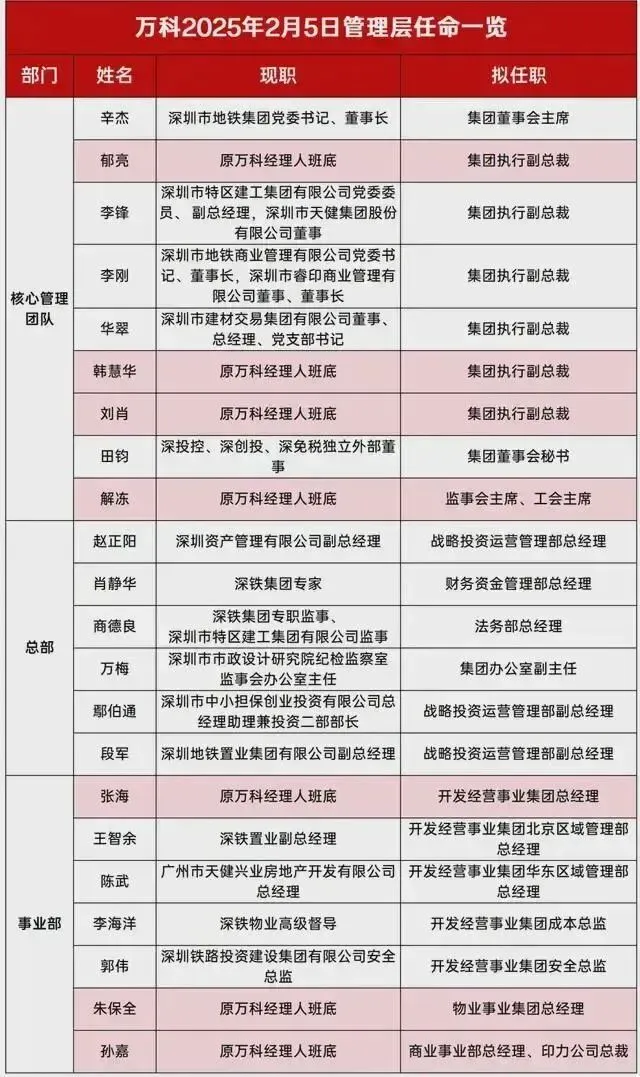 此时的万科,也经历了一波人事变更的动荡。