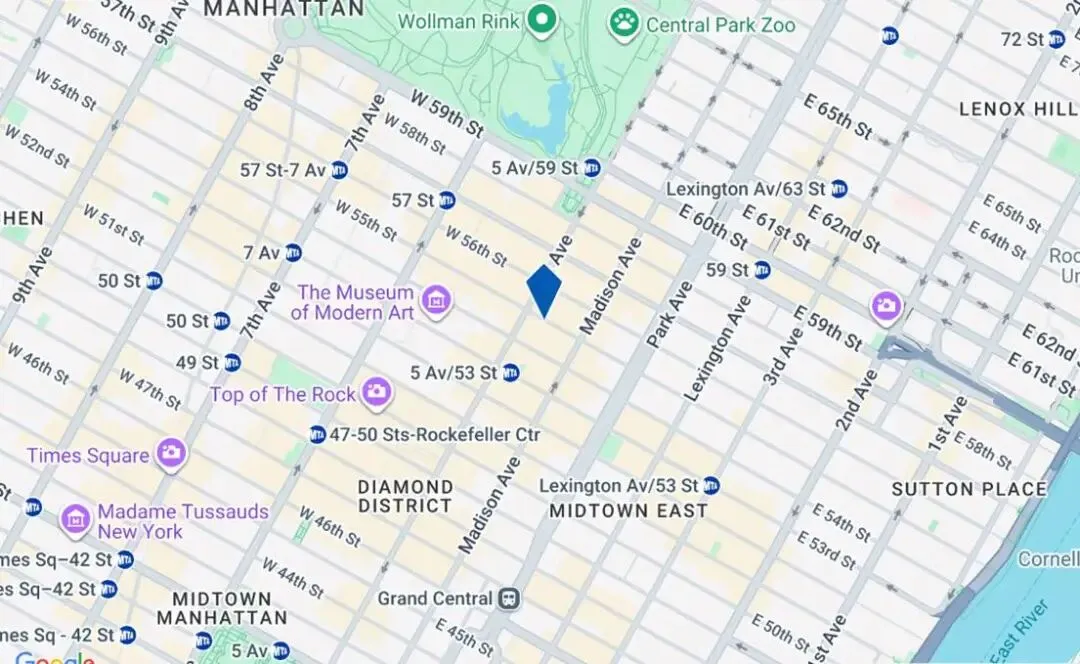 该地块位于54街第五大道与麦迪逊大道之间,毗邻瑞吉酒店以及沃那多所拥有的第五大道上段优质零售物业。根据现行分区规定,该地块可开发建筑面积约为23.25万平方英尺(按规划许可上限),沃那多计划立即拆除地块上的现有建筑。