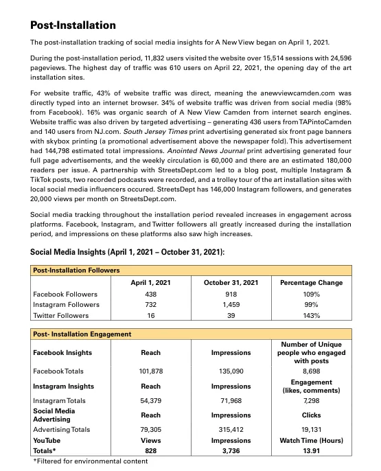- 2021年整个安装期间,6个艺术站点均未发生非法倾倒