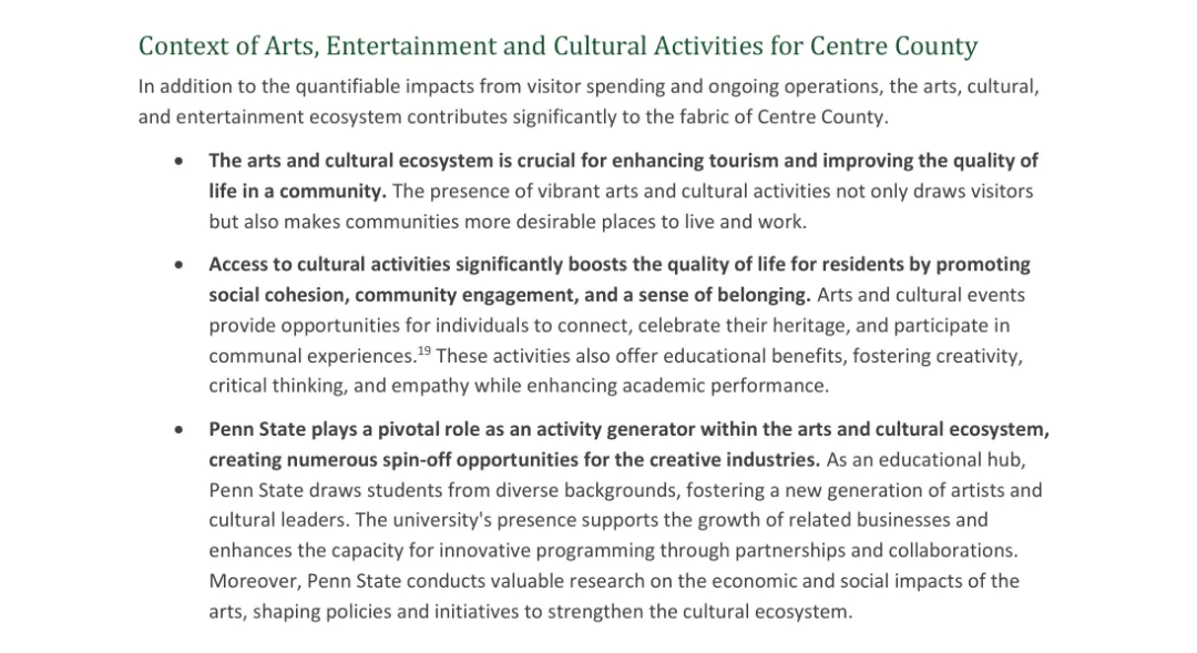 - 《Economic Impact of Arts in Centre County》- 宾州州立大学, 2024