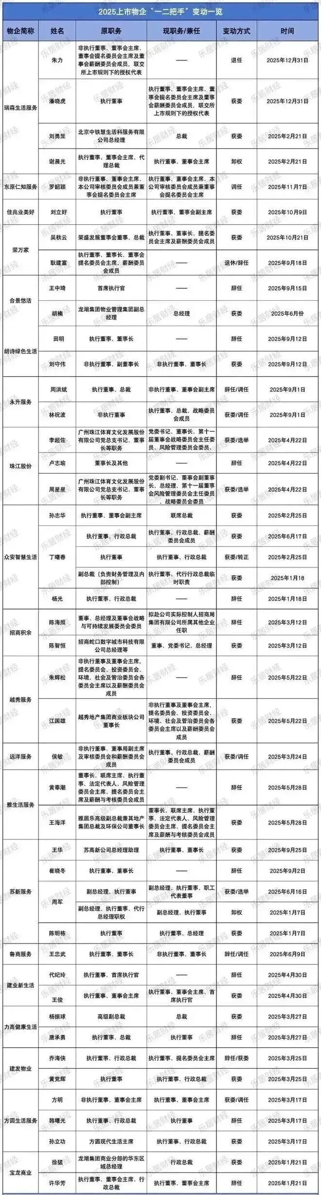 2025 年的物业行业,正在经历一场震动全行业的 “换血风暴”。据乐居财经《物业 K 线》重磅报道,仅今年以来就有20 家上市物企密集换帅,涉及 45 位核心高管职位变动;更值得警惕的是,在 28 位新任核心高管中,有 12 位直接来自关联地产方 —— 这意味着,地产行业的 “老将们” 正在集体杀入物业赛道,试图用地产思维给深陷困局的物业行业 “动手术”。