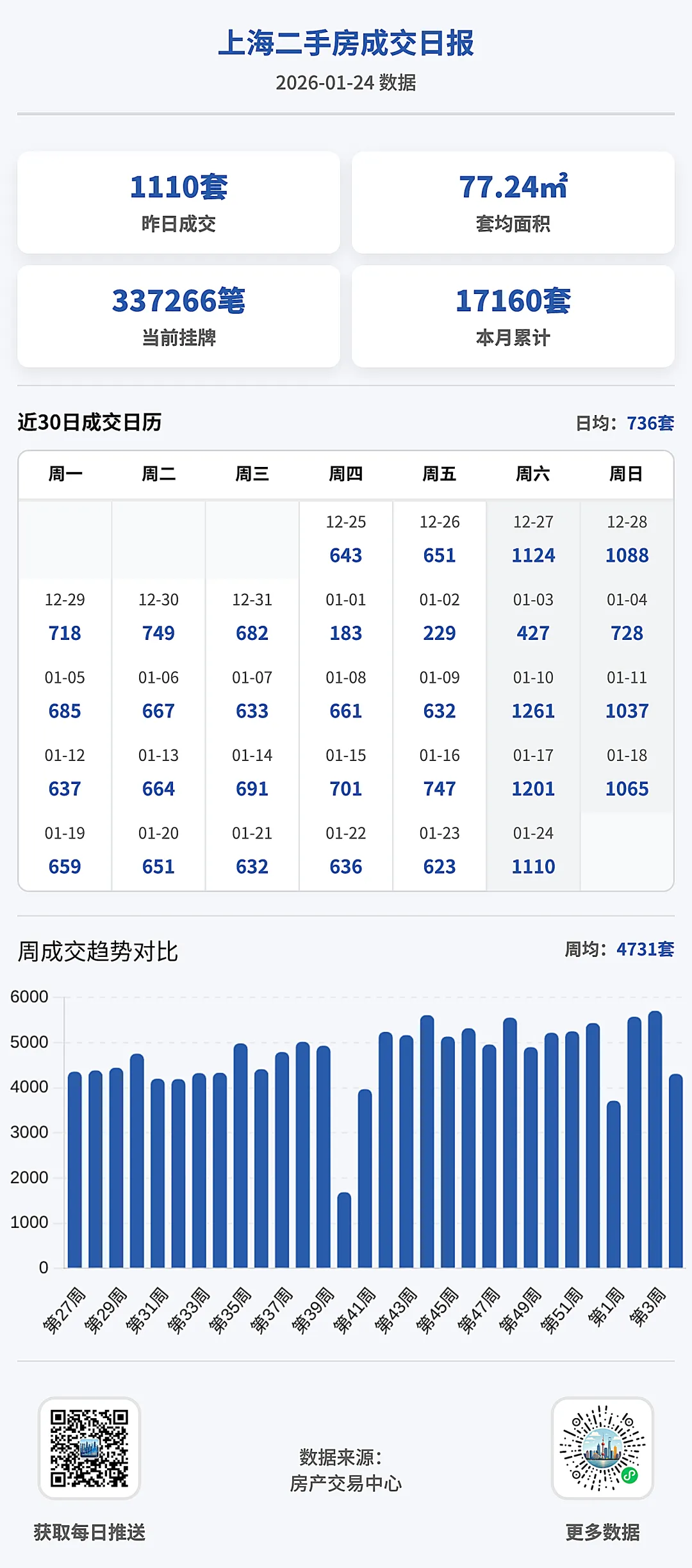 1月24日 周六,上海新房和上海二手房成交量合计1417套