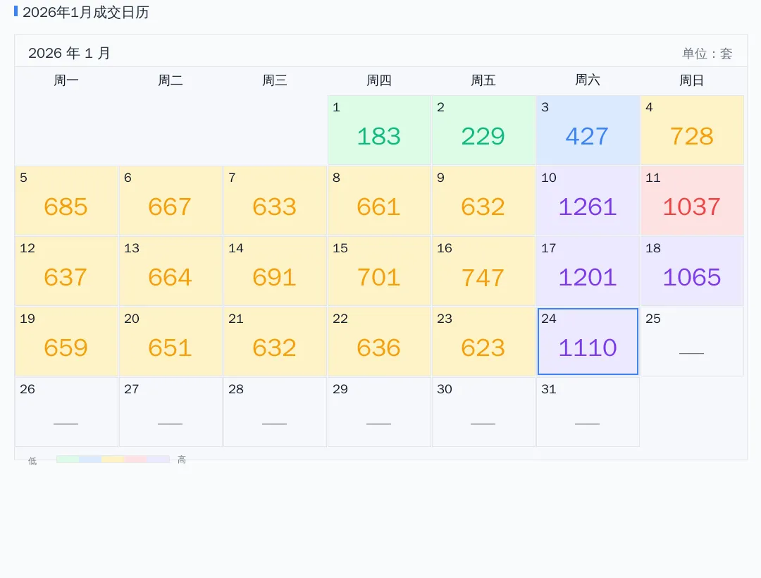 2026年01月成交日历