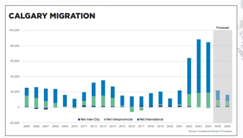因此,2026年卡尔加里及阿省的人口迁移水平预计将进一步下降。人口迁移放缓恰逢住房供应快速上升,将在2026年对本地房地产市场形成下行压力。