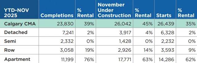 阿尔伯塔2025年新屋开工量超出预期,截至11月,新建房屋26439套,超过2024年全年(24369套)。