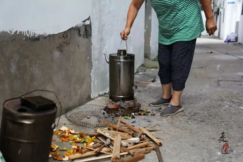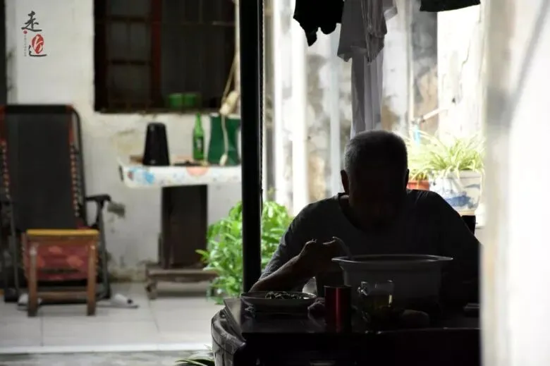 这里居住着很多老人,他们在走道里用着最传统的烧柴的方式烧水,坐在通风口吹吹风,或聊天或闭目养神。