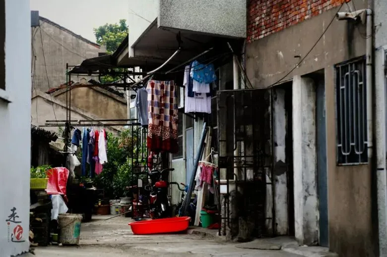 仅仅是几米宽的健身北路,把大圩沟与马路对面的金新鼎邦别墅区隔开,也隔开了两个世界,那边,是风格统一的现代建筑,这边,是狭窄阴暗的巷道,摩肩接踵的老破小。