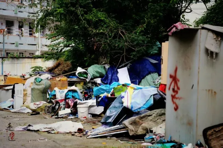 但即使是在这样的角落里,也有晾晒的衣服和新鲜的食物,很难想象,却又明显地证明着这里有人正在居住。