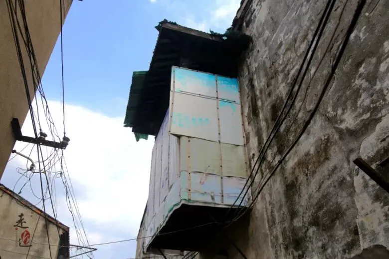 走近一栋小楼,外边布满了蜘蛛网般的电线、网线,如果不是抬头望见的一线天,还以为这里仍然是黑夜。狭窄的空间里阴暗潮湿,投射进来的阳光少得可怜,即便是午后,也感觉像是黄昏,甚至深夜。晾在窗外的衣服,要过好几天才能干。