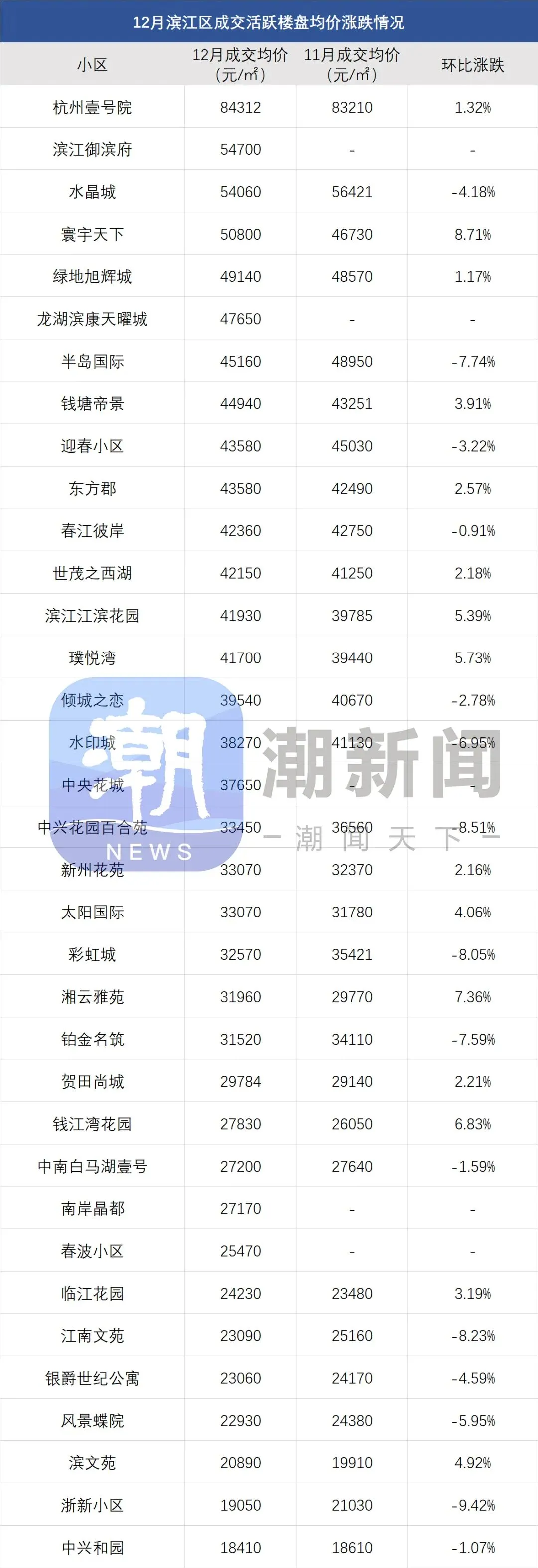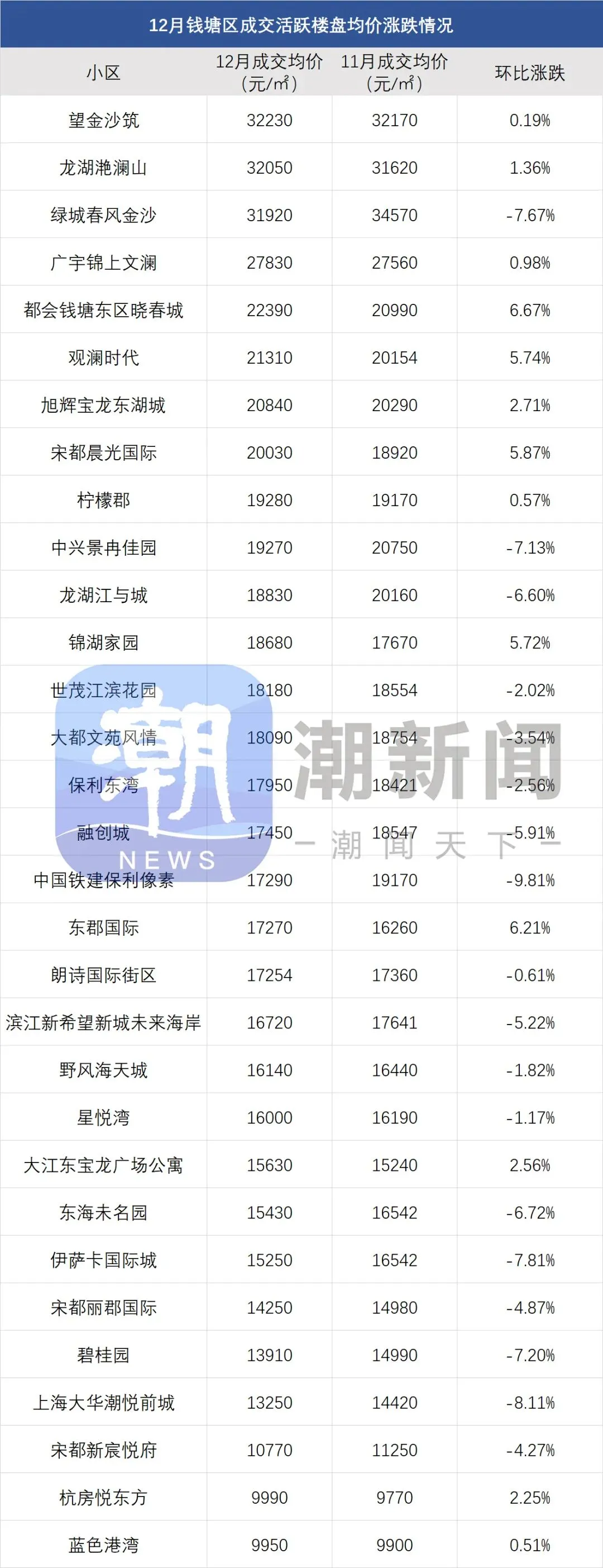 注:一、以上数据来源于中指研究院,统计为2025年12月二手房成交均价,2025年11月二手房成交均价;二、在不同成交时期,成交的物业类型(别墅、排屋、公寓等)、精装与否、户型大小、楼层与楼幢位置的不同会造成价格变动;三、有些房源为了减少税费,会稍微压低成交单价;而有些二手房为了增加银行贷款,也有可能稍微做高单价,具体房源信息建议去实地看看。
