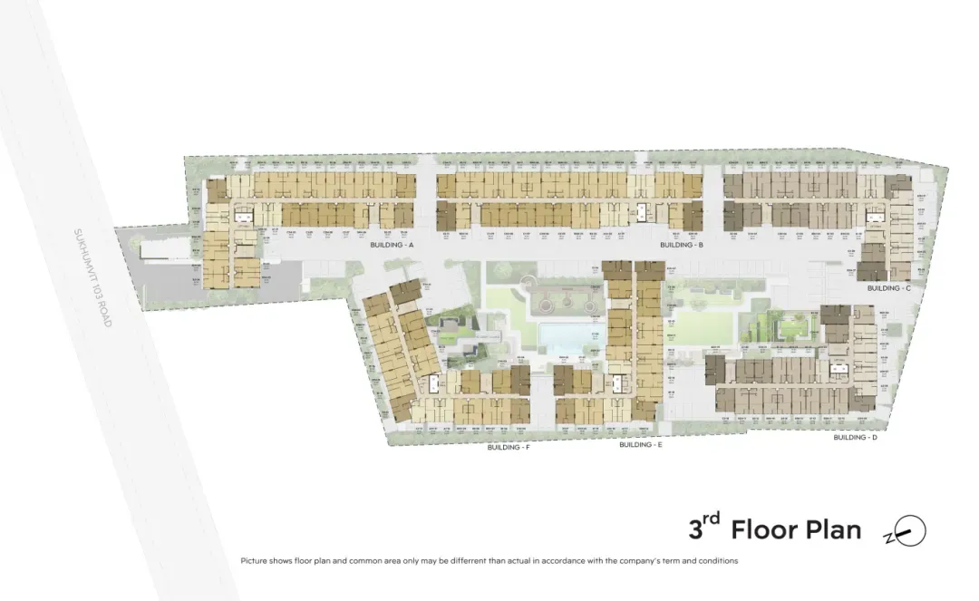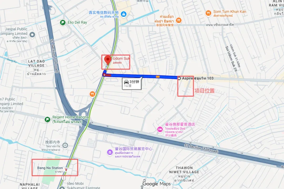 公寓门口就是素坤逸103巷,搭乘接驳车三四分钟即可到Udom Suk站,往南一站到Bangna,往北可以一线直达Onnut、通罗、Asok、Siam等核心区。
