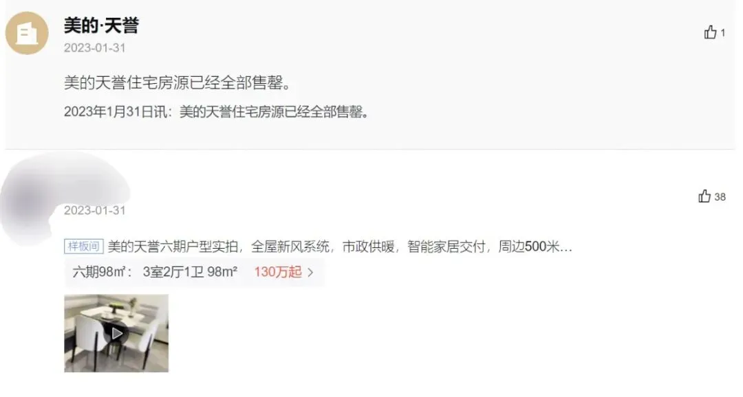 当时的代表神盘之一就是美的天誉,还记得在2023年1月最后清盘时,98平的房子还能卖到130万以上!