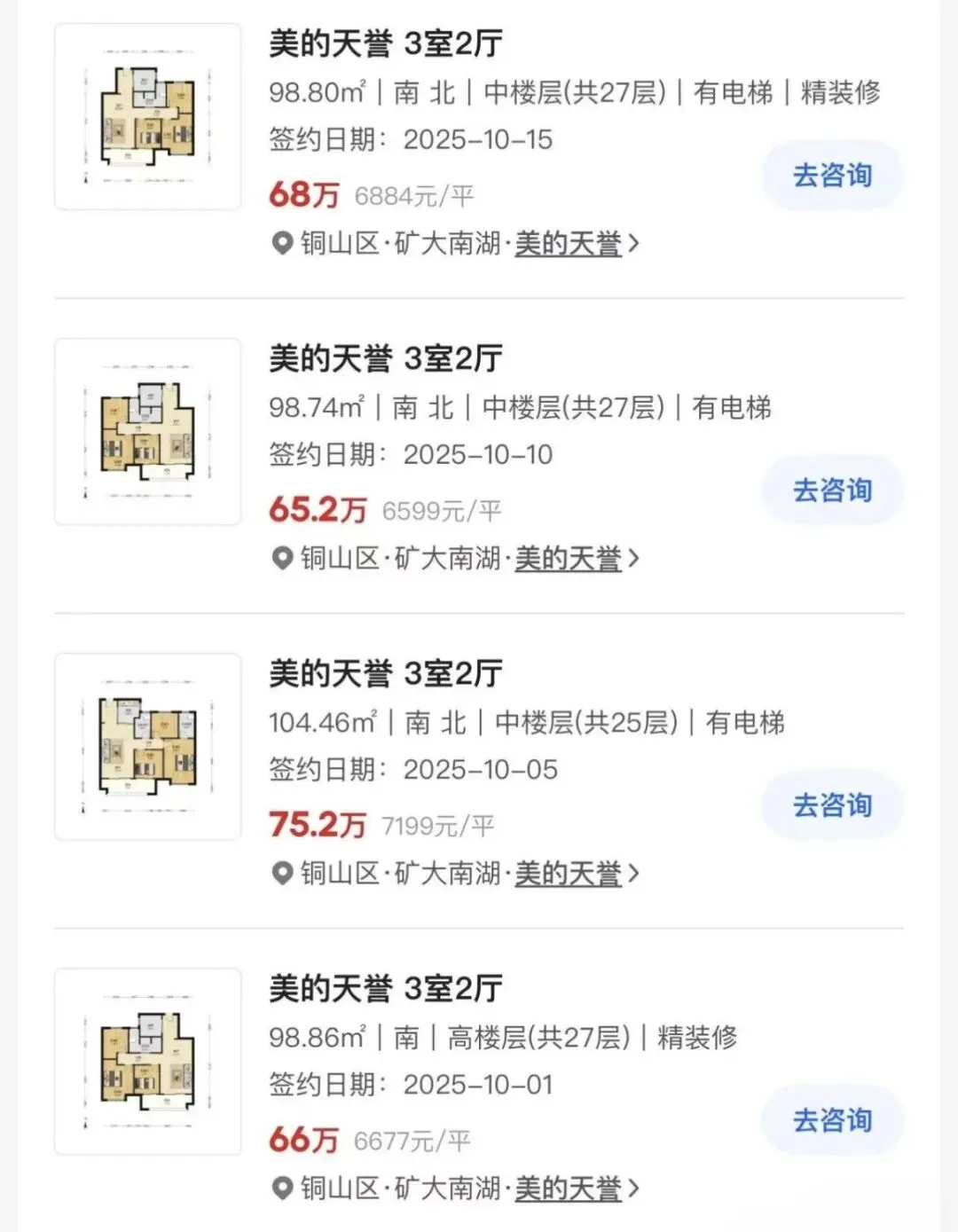结果现在两年多过去了,房子上房了,价格也降了不少!目前在贝壳找房的二手房成交数据中,98平的中间楼层,成交价也只要60多万!相当于亏一半了!