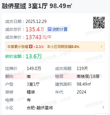 合肥二手房市场经过三年深度调整,已进入价值回归新阶段。瑶海区的案例表明,当房产剥离金融属性回归居住本质时,配套成熟、总价合理的区域将展现更强韧性。当前市场成交量稳中有升,议价空间趋于稳定,说明价格筑底信号显现。尤其是前期跌幅较大的区域,进一步下探空间有限,对于自住需求而言,现阶段或是审慎布局的窗口期。