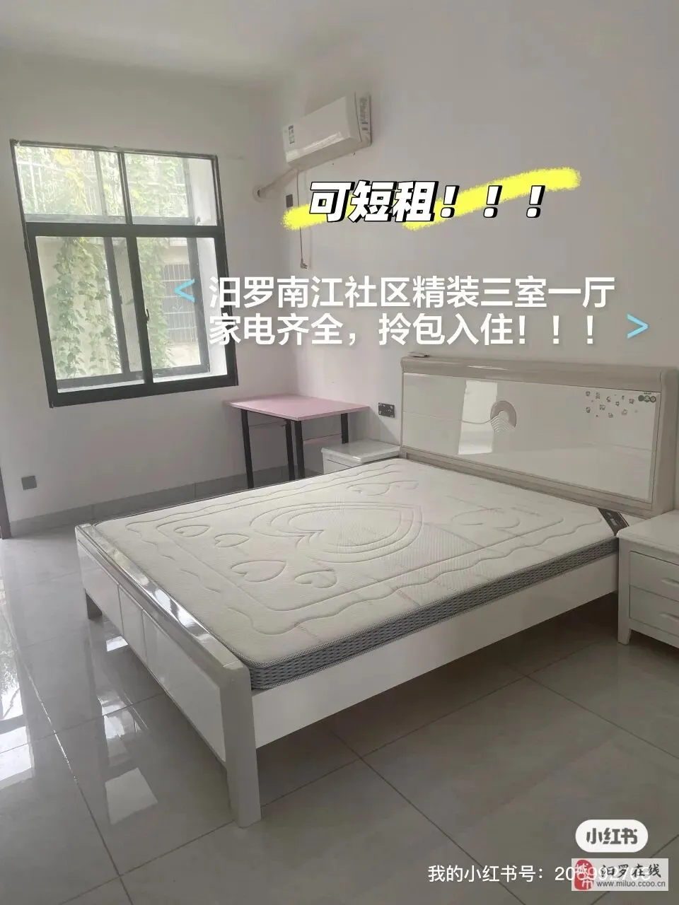 房屋详情:【可短租】汨罗南江社区一组 精装三室一厅 家电齐全 月租灵活 拎包入住! · 租期灵活: 支持短租(1个月起租)、长租,非常适合临时过渡、回家探亲、项目出差或家庭短期居住。 · 配置完善: 品牌家电、齐全家具一应俱全,真正实现拎包入住,省去您安家的烦恼。 · 生活便利: 地处成熟社区,菜市场、超市、餐馆环绕,日常起居极其方便。 · 即看即住: 房屋已彻底打扫消毒,手续办妥即可入住,为您节省宝贵时间。 房屋基本信息: · 地址: 汨罗市 南江社区 一组 (看房预约后告知详细楼栋) · 格局: 3室1厅1卫1厨1阳台 · 楼层: 第2层,共3层 · 装修: 精装修,温馨舒适,采光通风好 · ...