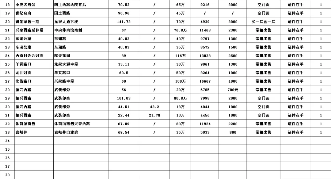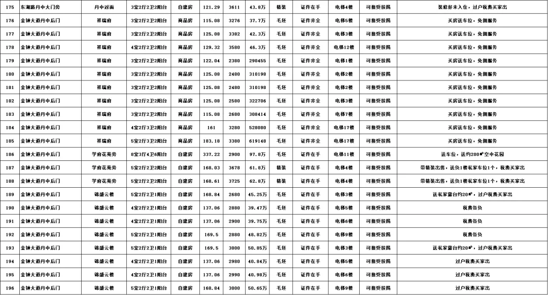 金盈地产最新在售房源表已更新,包含精装住宅,毛坯住宅,商铺,车位等销售及出租.百分百真房源,所售房源均证件在手,可按揭,随时看房