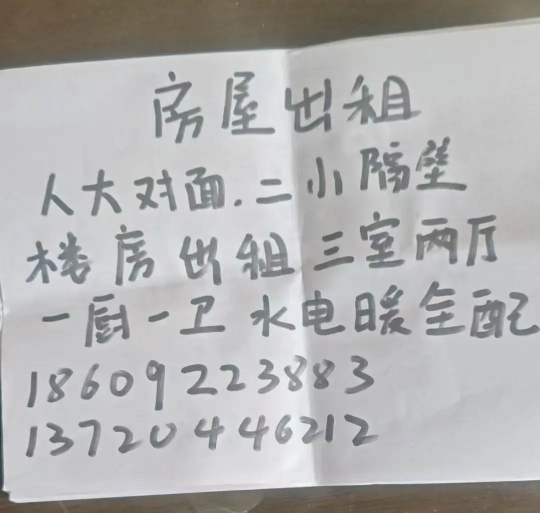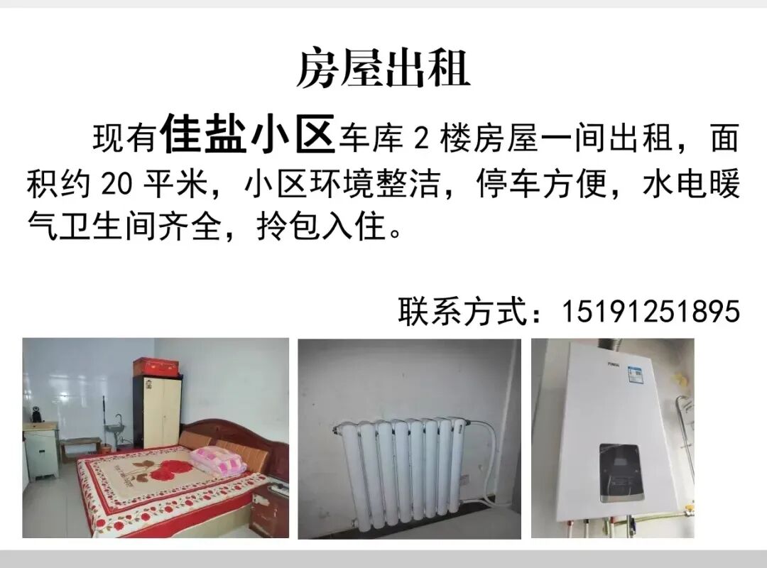 转发:佳县外贸小区附近有房出租,距离佳县中学、第一小学不远,三室一厅,水暖电气齐全,交通便利,停车方便。 看房电话15319600503 13379574026 ![]() |
