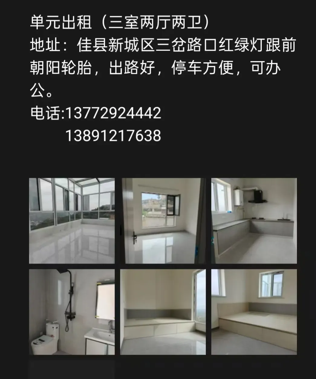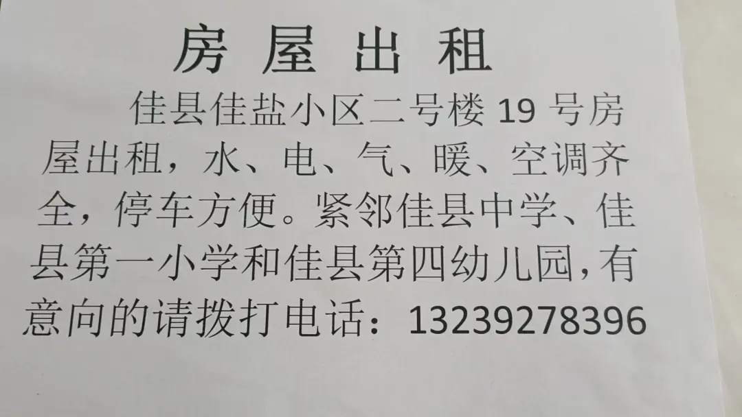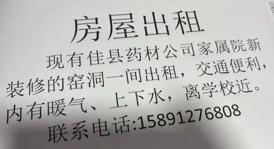 新房出租👉 房东直租,价格亲民! 独卫带厨房,民水民电,在佳县中心主街上,配套设施齐全,超市学校步行十分钟可达 适合上班族,学生租房 诚信出租,有意联系: 电话13239121099 .13237123578 帮朋友转发,有意向打电话问