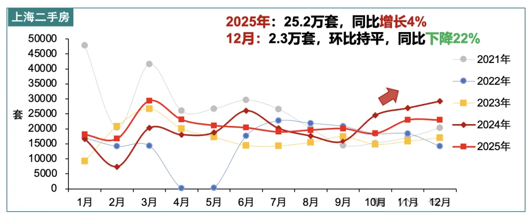 与挂牌量持续回落形成呼应的,是成交量的稳步攀升。2025 年上海二手房全年成交 25.4 万套,创下近四年新高,市场活跃度显著提升;进入 2026 年,热度延续不减,截至 1 月 22 日当月成交已达 14791 套,预计全月成交量突破 2.3 万套,实现连续三个月成交破 2 万套。这一行情在近十年中仅 2020 年、2024 年出现过,背后是 2025 年政策大年的红利释放 —— 购房门槛与成本双双降低,直接推动积压的刚需加速入市,为市场注入强劲动力。