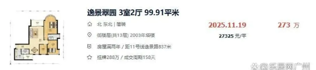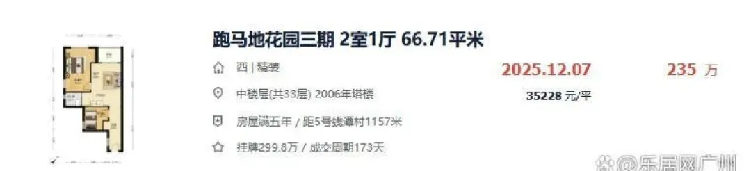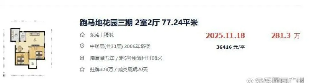 前几天,乐居君整理2025年楼市总结时发现。目前广州二手房市场的规模已经远远大于新房。2025年,广州的新房住宅成交了63755套,二手房住宅成交了108812套。相差4.5万套左右。成交的二手房中,76.9%总价在300万以下。低价位的二手房占到广州楼市的一半左右。的房价还是比较亲民的……大部分购房者只需要支付45万元的首付就能上车(按照15%的首付比例来计算)。300万以下的房子能买哪些?答案会让很多人感到意外,核心区的机会到处都是。天河、海珠区也有总价较低的二手房,而且成交非常活跃,金融城的新房普遍在10万+,单价2字头就可以买到二手房。盈彩美居去年12月成交了多套两房单位,单价介乎2.4-2.9万元/平方米,均为南向。一套建筑面积为75.9平方米的西南朝向两居室,中层,成交单价为24111元/平方米,总价为183万元。虽然不在金融城中心地带,但是盈彩美居小区比较大,内部自成一个整体,能满足日常生活需求。小区周边配套设施比较成熟,13号线开通之后,珠村站就在小区门口,同时还有便民车可以直达5号线三溪站。对于想留在天河核心的刚需群体而言,盈彩美居也还算一个不错的选择。除了盈彩美居之外,金融城内的富力天朗明居,在300万以内也可以买到两房。去年九月成交的东向房源,建筑面积为71.95平方米,高楼层,总价为186万元,单价为25852元/平方米。通便利,BRT站就在小区对面,离13号线/4号线车陂站也不远。视线往西看,即使是在房价的“宇宙中心”珠江新城,300万的价格也并没有完全阻挡。跑马地花园三期,单价3.5-3.6万元/㎡,300万买两房还有余......珠江新城东区的跑马地花园的产品不是很好。但是最大的好处就是靠近马场地块,未来会有公园、商业、各种高端配套,居住舒适度也会随之提升。在顶豪凯旋新世界的旁边,誉城苑的部分户型可以一线望江,但是由于产品过时、外立面难看等客观原因,也可以低价买到。去年8月份,小区成交了一套面积为67平方米的东南向户型,总价只有303万元。再看海珠区,300万以内的选择就更多了。常年位于二手房成交排行榜上的金碧花园、保利花园、逸景翠园等网红楼盘,如今300万就可以买到三居室了。曾经成交价格达到过6.5万+/平方米的逸景翠园,如今成交价格基本在2-3万之间。去年11月份成交的一套建筑面积约为100平方米的三房北向房源,低楼层,总价为273万元,单价为27325元每平方米。保利花园和逸景翠园的成交价格相差不大,总价300万左右,可以买到100平米左右的由于新中轴拆迁的原因,鸿运花园也成了“网红盘”,成交活跃度大大提高。300万左右,也能够买到两房或者三房的房屋。虽然鸿运的楼龄比较大,有些楼栋已经超过了30年。但是它位置很好,在新中轴的正中间,出门就是客村地铁站、丽影广场,抬头就能看到广州塔。因此小区无论出租还是交易,都一直很受大家欢迎。审视这些房源,客观上存在“硬伤”,楼龄偏大、户型过时、物业一般、社区设施陈旧……但是这恰恰反映了目前市场真实的博弈和选择逻辑。买房其实就是一个取舍的过程对预算有限的首套房购房者来说,他们关心的顺序是:通勤距离、总价门槛、居住品质、远期增值。位于核心区域的老小区,用地段换取时间,用产品的缺陷换取价格的空间,击中了“上车”的第一要素。它们表明,在广州,有一个容身之地并不是不可能的事情。300万以下的市场撑起的是楼市的一半,也是广州的一片温暖。文章图片、成交信息来源:贝壳找房