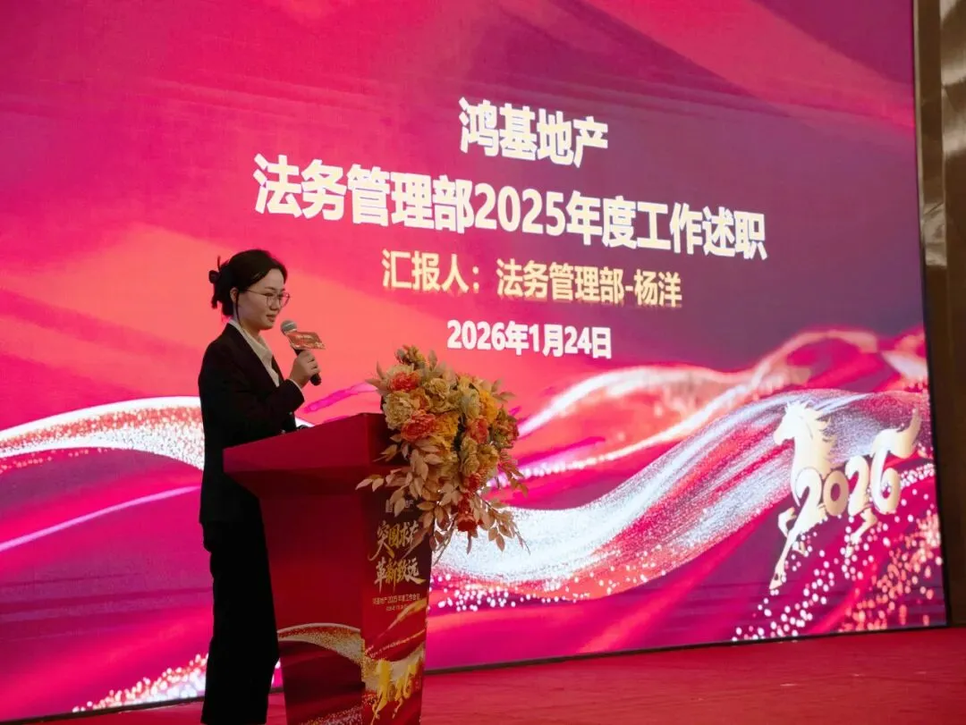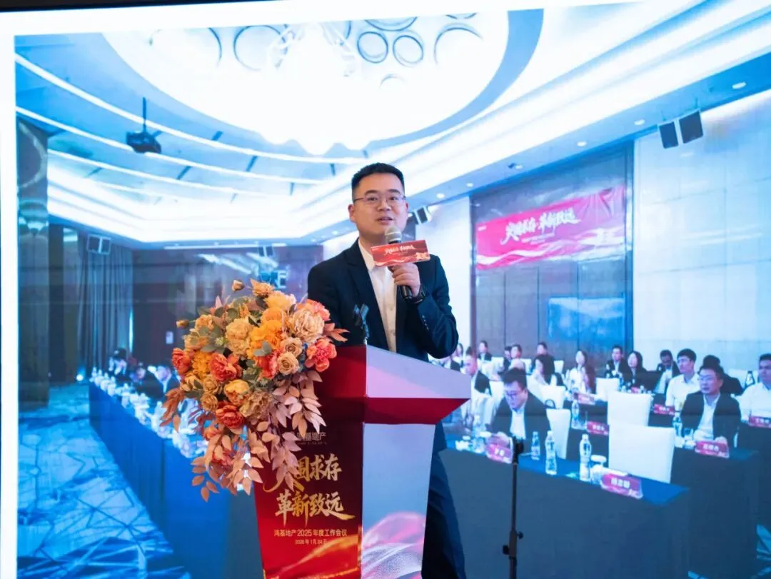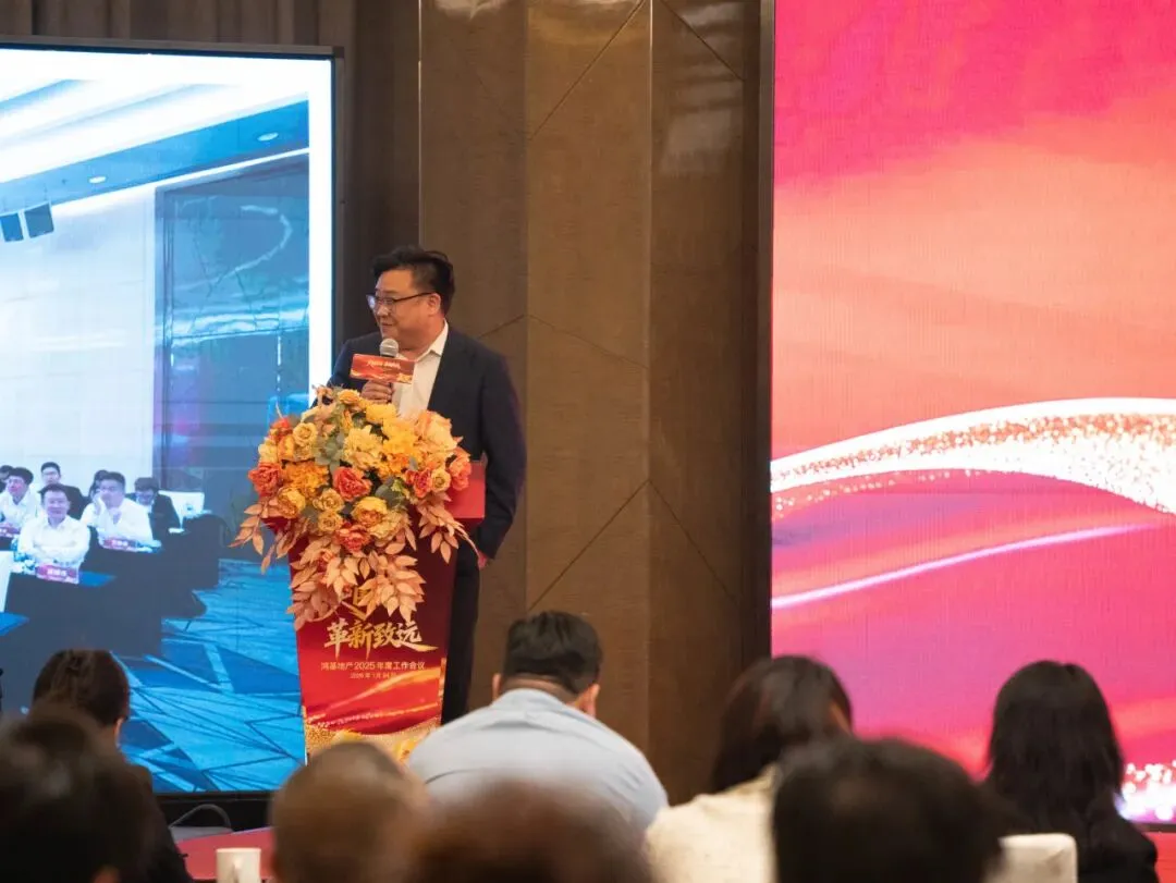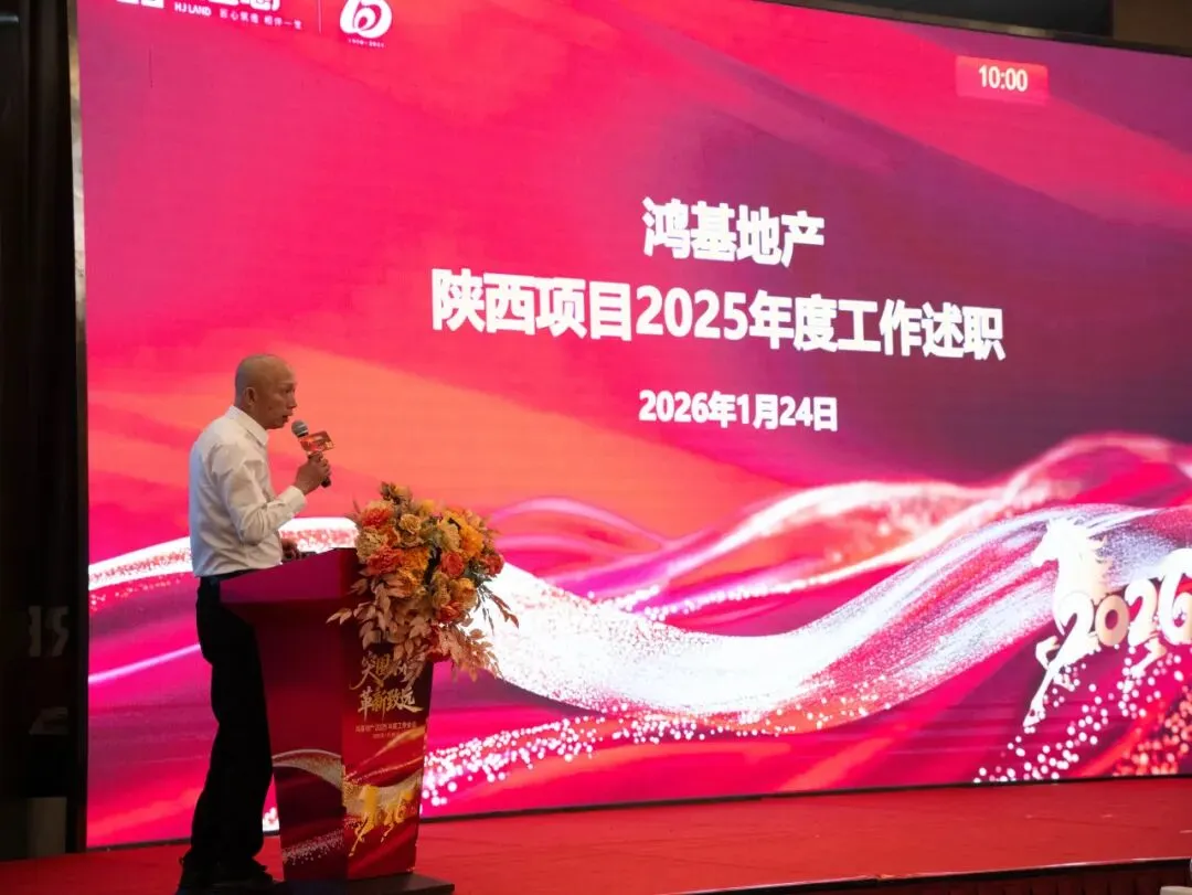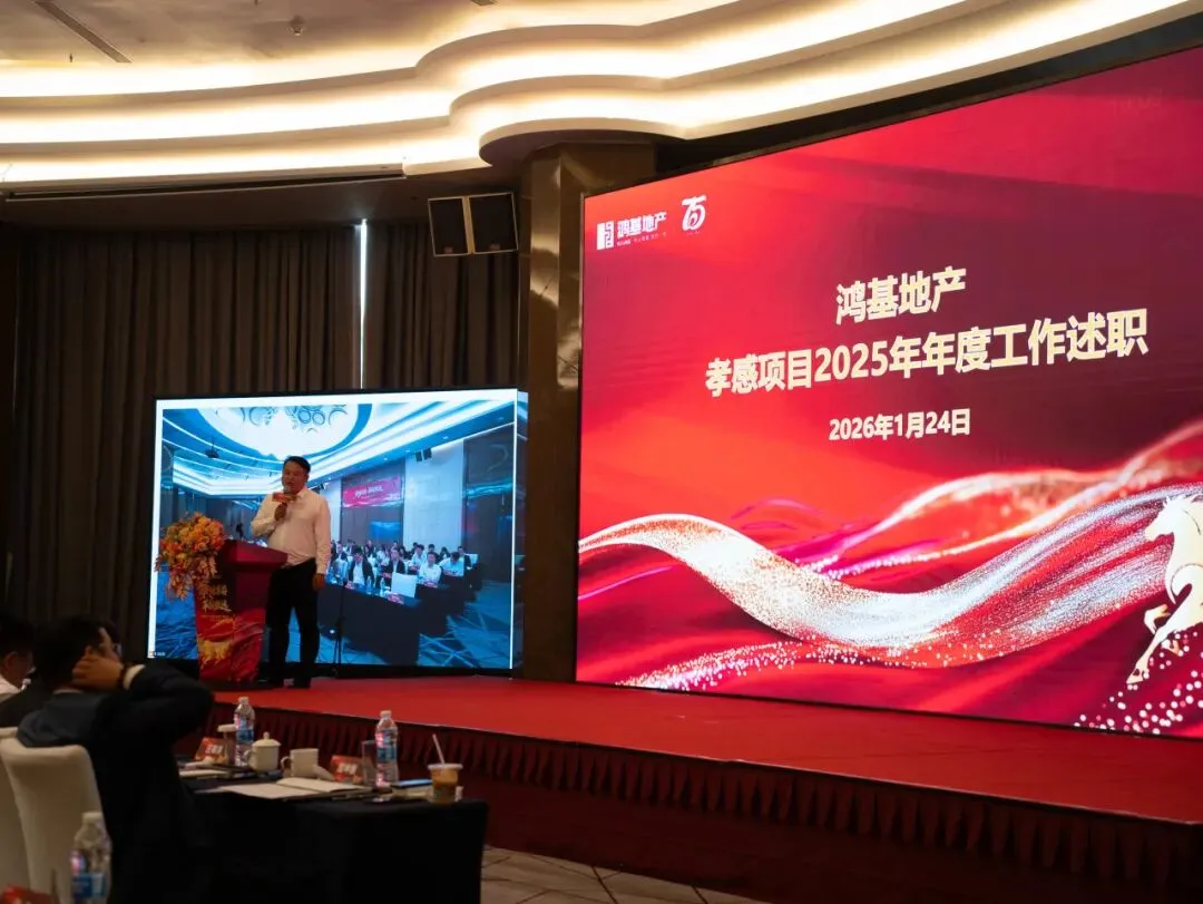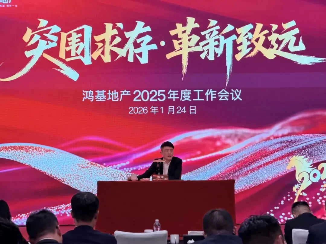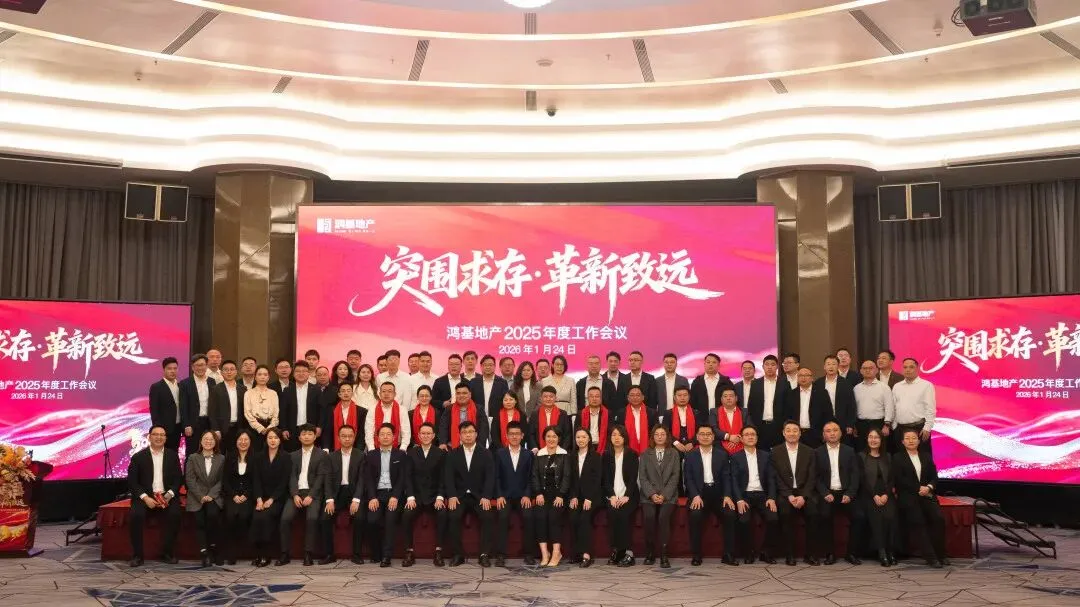 2026年1月24日,鸿基地产2025年度工作会议于深圳盛大举行。本次会议以“突围求存 革新致远”为核心主题,旨在系统回顾2025年公司在复杂环境中的突破与成长,谋划2026年升级与高质量发展的行动方略。鸿基地产管理层、各部门与业务线负责人、区域及项目核心骨干、年度先进代表等将再次齐聚一堂,凝聚共识、激发动能,共同书写鸿基奋进的新篇章。