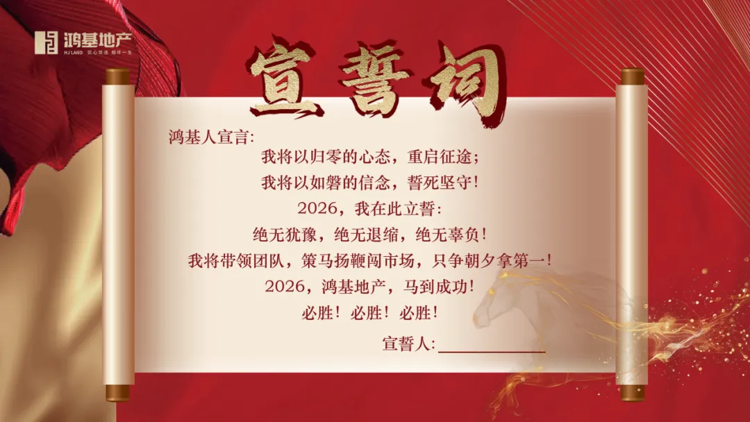 随后,全体与会代表共同举行了庄重的年度宣誓仪式。誓言铿锵有力,彰显着鸿基人在新征程中的坚定意志与决心。这不仅是对2026年度目标的郑重承诺,更是全体同仁向“突围求存、革新致远”新征程发起的全面动员与庄严宣告。