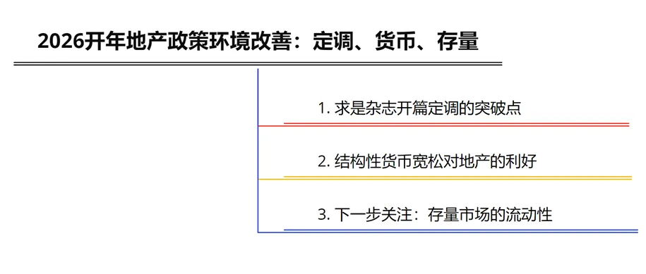 本文来自方正证券研究所于2026年1月24日发布的报告《2026开年地产政策环境改善:定调、货币、存量》,欲了解具体内容,请阅读报告原文。