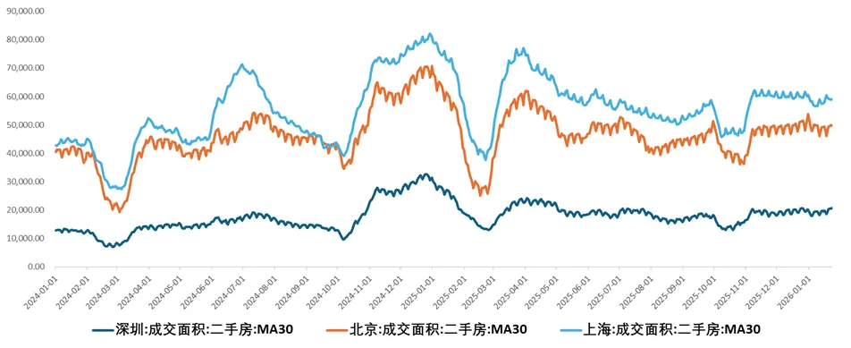 我们观察2024年初至今的二手房日度成交面积高频数据(取30日移动平均值),也可以发现北京、上海、深圳的二手房成交面积中枢逐渐稳定。