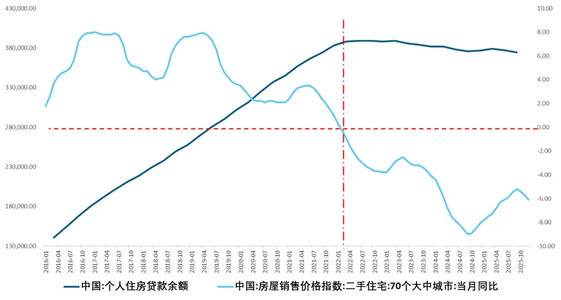 图:二手房统计局价格同比增速与个人住房贷款余额