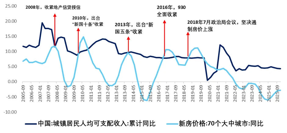 图:新房价格增速与人均可支配收入-地产政策的内在机理