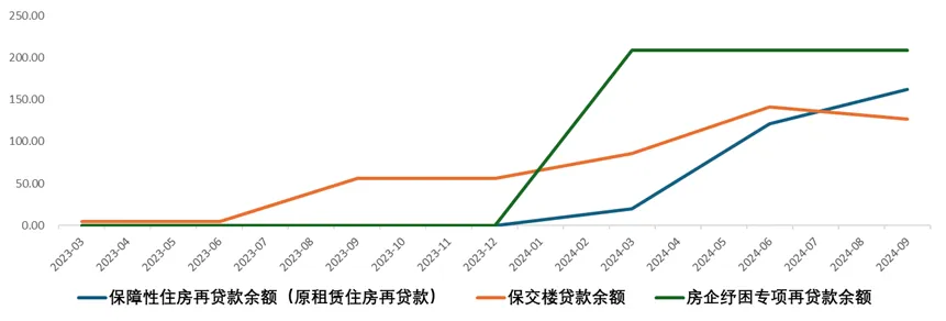 过往地产支持类的结构性工具再贷款,使用规模较低。截至2024 年 9 月,3000亿元保障房再贷款额度仅实际投放 162 亿元,使用率约 5%,政策效能未充分释放。我们参考其他地产类再贷款的投放,包括保交楼再贷款和房企纾困再贷款,实际使用额度均在250亿以下,对本身再贷款总额度使用率低。而后续针对再贷款降低利率,预计可以提升再贷款的投放情况。