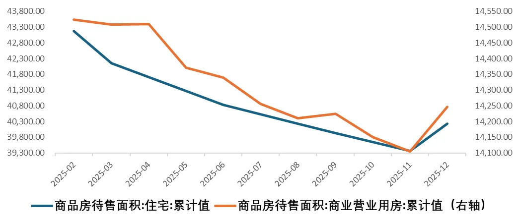考虑到政策推出的背景,政府推动商业经营用房去库存的意图尤为明显。2025年2-12月,统计局商品房中的住宅待售面积下降2938万平方米,但是商业经营用房待售面积下降仅有277万平方米。