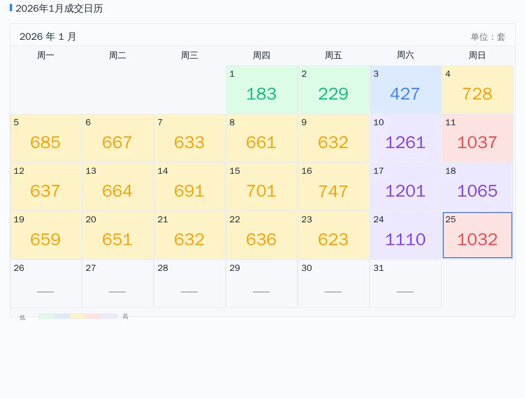 2026年01月成交日历