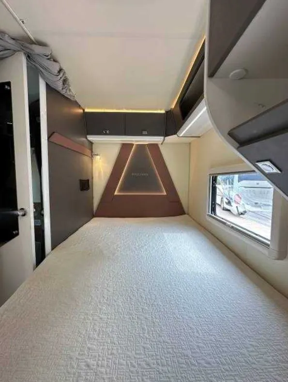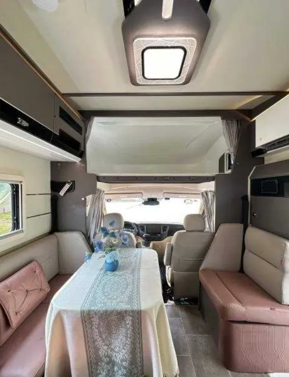 【上装配件】小米家用空调,行车空调后出风口,燃油暖风热水,双向换气扇,美的滚筒洗衣机。微波炉,电磁炉,洗菜池,五孔插座,双开门冰箱。卫生间有抽拉马桶,面盆,暖风出风口,带灯梳妆镜,双向换气扇,五孔插座,毛巾架,独立淋浴间。 遮阳棚,电动踏步,户外桌板,抽拉燃气灶带洗菜池,充电口,加水口,三口拖车杠,驻车支腿,内置备胎。
