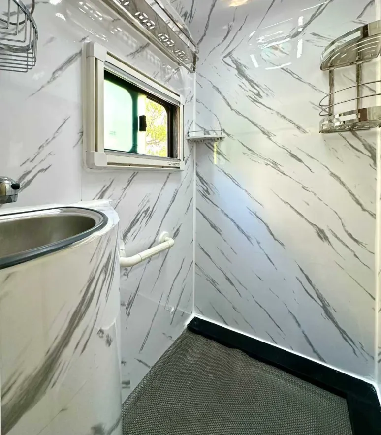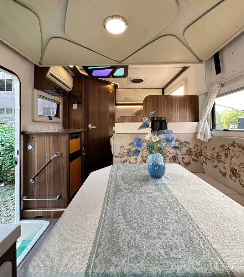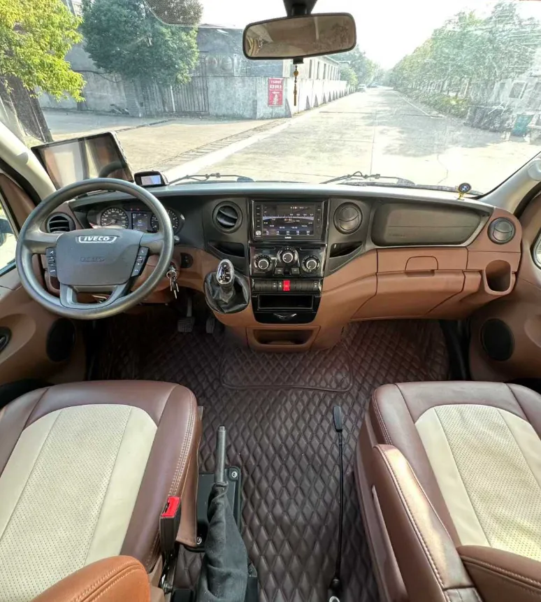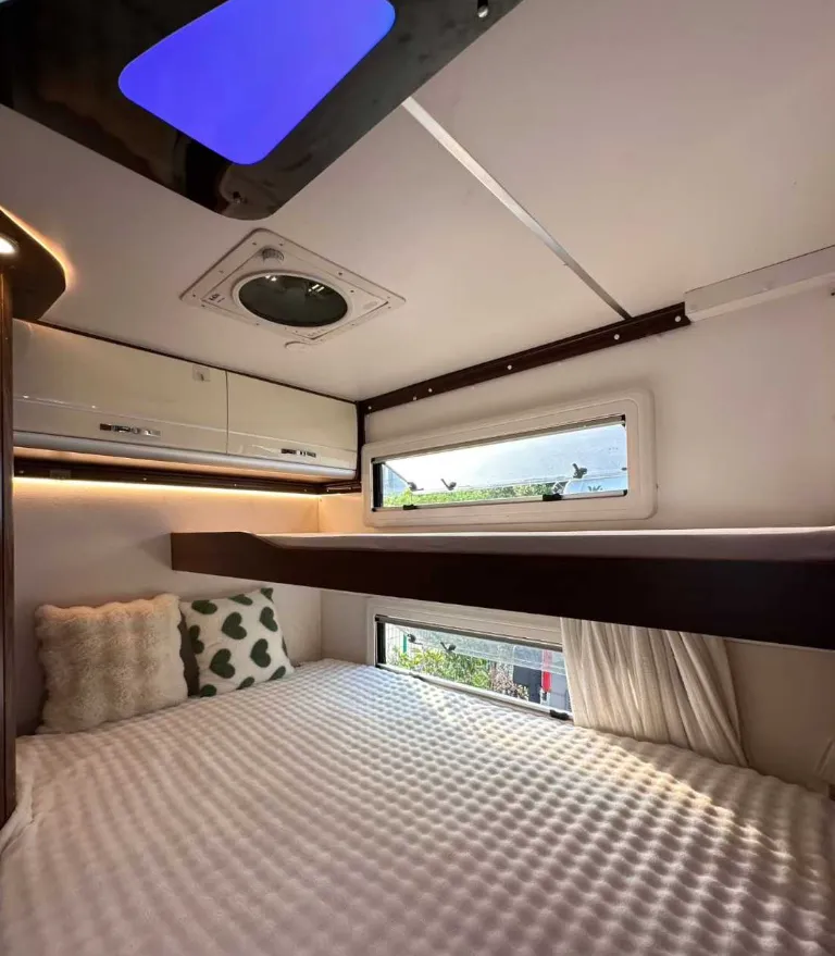 【上装配件】格兰仕家用空调,车载电视,电热水,海尔滚筒洗衣机,双向换气扇,五孔插座。抽油烟机,洗菜池,双开门冰箱,五孔插座。卫生间有面盆,淋浴花洒,毛巾架,双向换气扇。多美达遮阳棚,踏步,抽拉柴油灶,加水口,充电口,三口拖车杠,底置备胎。