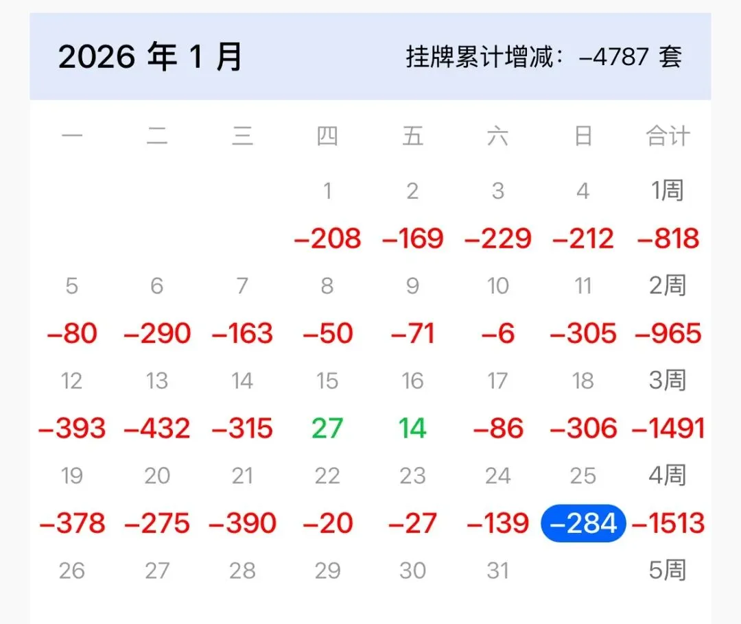减少了1513套。截至25日,本月挂牌量已减少了4787套。