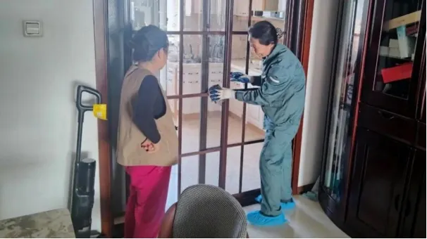 工作人员细致擦拭门窗、清扫地面、整理杂物,不放过墙角、窗台等卫生死角,用专业服务让老人的家焕然一新,以窗明几净的环境迎接新春佳节。