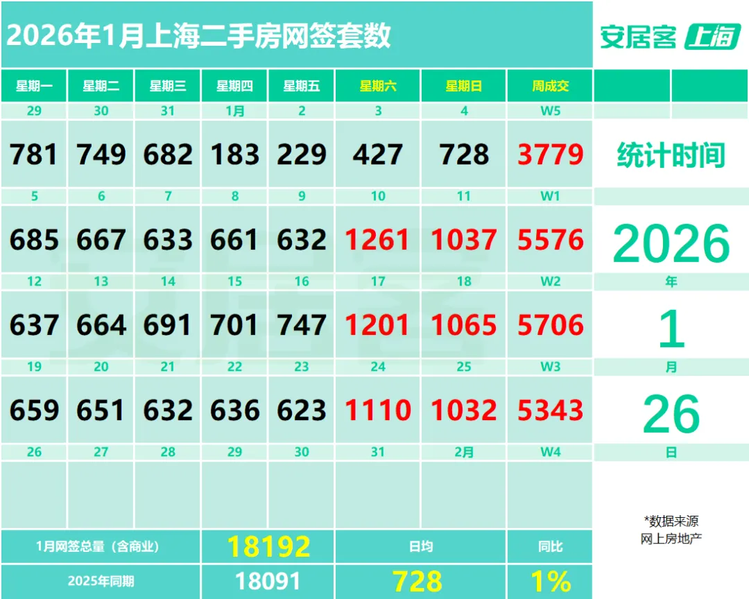 >周末成交双破千!1月上海二手房成交突破18000套!