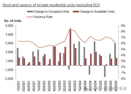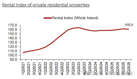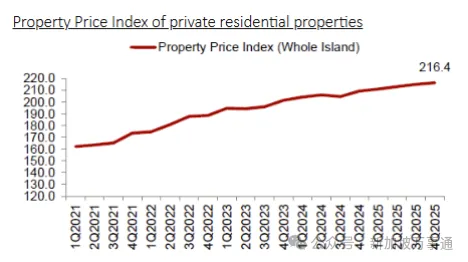 首先,是新加坡房产价格指数。2025年第四季度,新加坡房产价格指数上升了0.6%。新加坡房产指数是一条稳定的上升线,有兴趣的朋友,可以看一看我之前的【萝卜点评 | 到底是什么,在推动新加坡房产的平稳上涨?】。