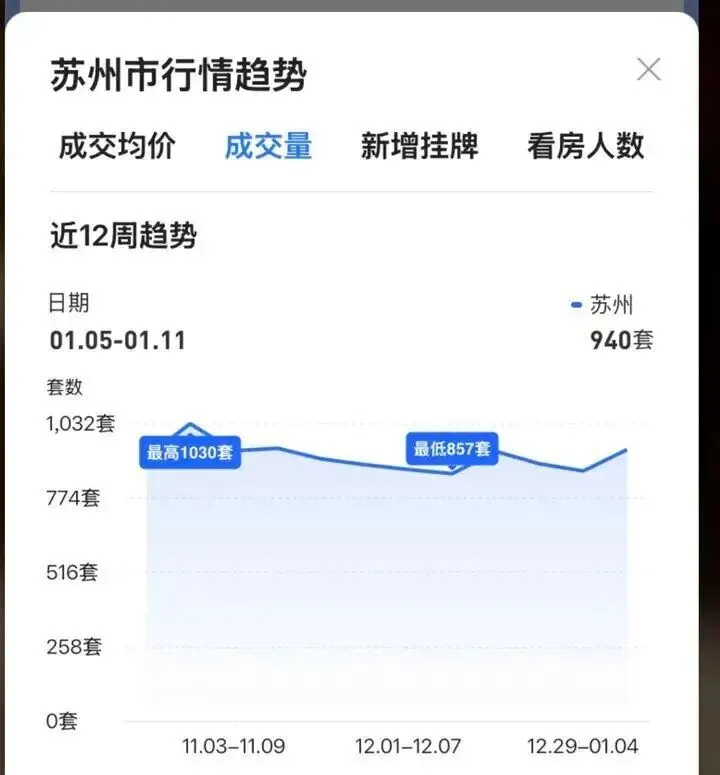 2026年1月,苏州二手房市场全市月度签约量预计达到5352套,环比上涨3%,同比更是飙升82%,连续两周成交破千套的表现中释放。