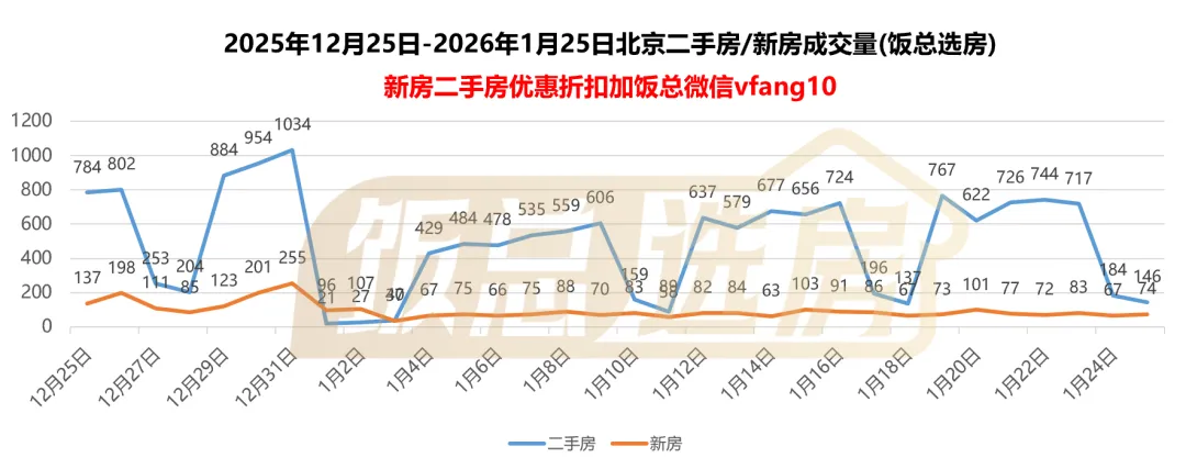 1月1号-25号北京二手房住宅网签10793套,25号146套