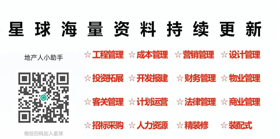 【快速通道】识别二维码加入【地产人小助手】知识星球,星球中所有资料均可下载,不定期更新上传,欢迎您加入知识星球学习、探讨。