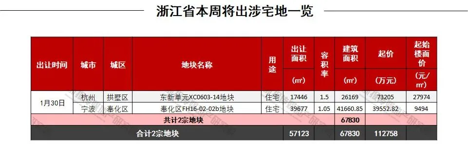 两宗地块计划于1月30日出让,敬请关注浙报传媒地产研究院为您带来的实时直播。