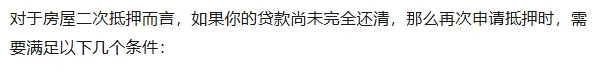 房屋二次抵押贷款需要满足哪些条件?